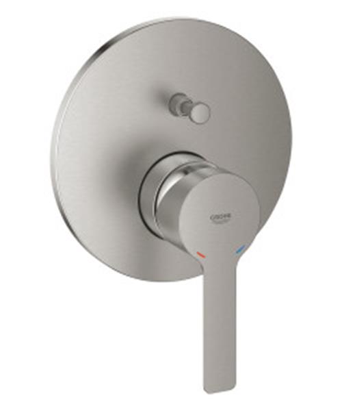 De GROHE Lineare eengreeps mengkraan trim set is uitgevoerd in een chique roestvrijstalen look en vormt de perfecte finishing touch van jouw douche of badkuip. GROHE Lineare is vervaardigd in Duitsland en gebruikt slanke profielen om een sensueel minimalistische vorm te creëren, perfect voor badkamers met een kosmopolitische stijl. Het intuïtieve ontwerp nodigt uit tot interactie. Het heeft een metalen muurrozet en hendel die een gevoel van stevigheid bieden en het slanke profiel - de muurplaat heeft een diameter van 158 mm - zal in de smaak vallen bij de echte design- liefhebbers. De strakke 2-weg omstelling steekt slechts 43 mm uit en maakt het mogelijk om moeiteloos te schakelen tussen hoofd- en handdouche, of douche- en baduitloop. Deze stijlvolle mengkraan ziet er nog jaren als nieuw uit, omdat deze een duurzame GROHE Long-Life-afwerking heeft in combinatie met een verdampingsafzettingsproces- technologie (PVD). Dit proces zorgt voor nog meer krasbestendigheid. De chique en duurzame GROHE SuperSteel roestvrijstalen matte afwerking zorgt ervoor dat de hele set er prachtig uitziet. En het GROHE FastFixation-rozet met een vergrendelingssysteem en afgedekte afdichting maakt de installatie snel en gemakkelijk.