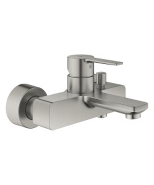 Door het slanke en minimalistische design heeft deze stijlvolle GROHE Lineare wandgemonteerde badmengkraan een kenmerkende uitstraling die perfect past bij een stoere en hedendaagse badkamer. De kraan is ook voorzien van een douche-aansluiting, dus je hoeft alleen jouw favoriete handdouche aan te sluiten om van ware luxe te genieten in bad. Je kunt namelijk dankzij de handige omstelling zo wisselen tussen de straal van het bad en de douche om je haar te wassen. Deze elegante eengreeps mengkraan zit vol met GROHE technologie en is een genot om te bedienen. De bediening van het water en de temperatuur is precies en gaat moeiteloos dankzij de GROHE SilkMove cartouche met keramische schijven, terwijl de geïntegreerde terugslagklep ervoor zorgt dat er geen afvoerwater terugstroomt. De matte roestvrijstalen GROHE SuperSteel afwerking gaat jarenlang mee. Deze elegante kraan vult alle andere producten in de collectie perfect aan zodat je een geordende badkamer kunt creëren waar alles naadloos op elkaar aansluit.