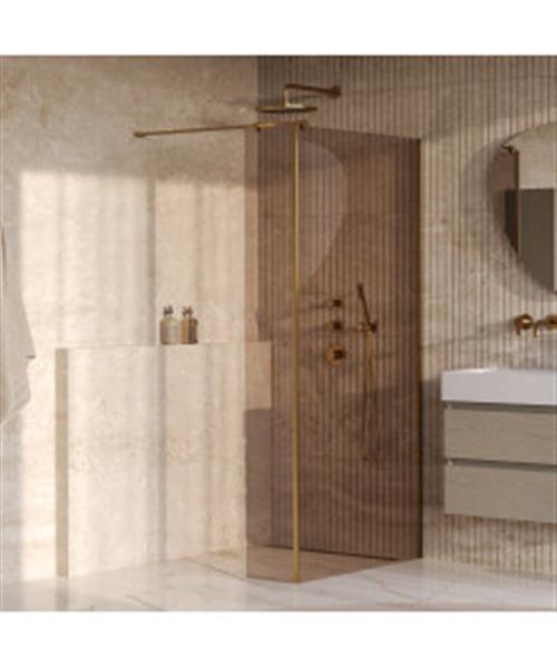 BRAUER Oblivion inloopdouche brons glas 90x200 met zijwand 30 incl. glascoating PVD goud geborsteld (GS-OBI2B9030200GG)
