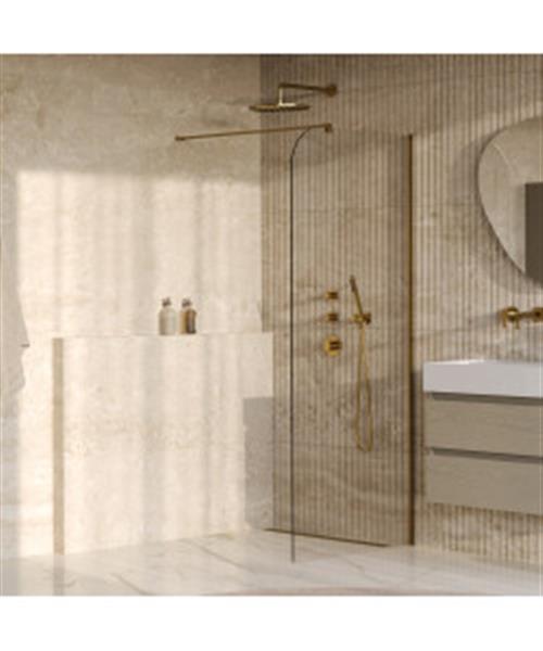 De Orion serie onderscheidt zich door modern, strak design. Kies uit geborsteld RVS, mat zwart, geborsteld gunmetal PVD, geborsteld koper PVD, geborsteld goud PVD of chroom. Verkrijgbaar in 90x200 of 120x200 cm, met helder of brons glas. Maak je badkamer compleet door de inloopdouche te combineren met bijpassende BRAUER kranen en meubels.