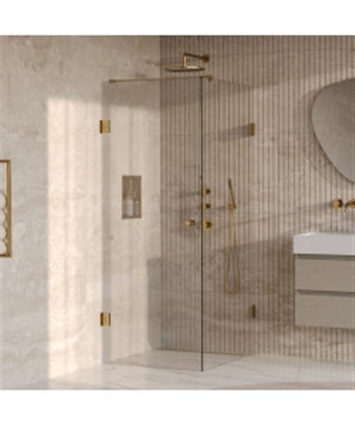 BRAUER Void Carving douchecabine met draaideur helder glas 90x100x200 incl. glascoating PVD goud geborsteld (GS-VOCC1H90100200GG)