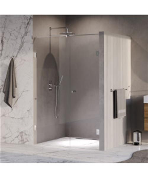 BRAUER Void Carving nisdeur 2-delig helder glas 140x200 omkeerbaar met draaideur 70 aan muur incl. glascoating chroom (GS-VOCN2H7070200CE)