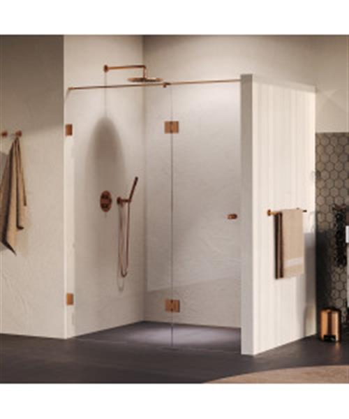 BRAUER Void Carving nisdeur 2-delig helder glas 160x200 omkeerbaar met draaideur 70 aan glas incl. glascoating PVD koper geborsteld (GS-VOCN3H7090200GK)