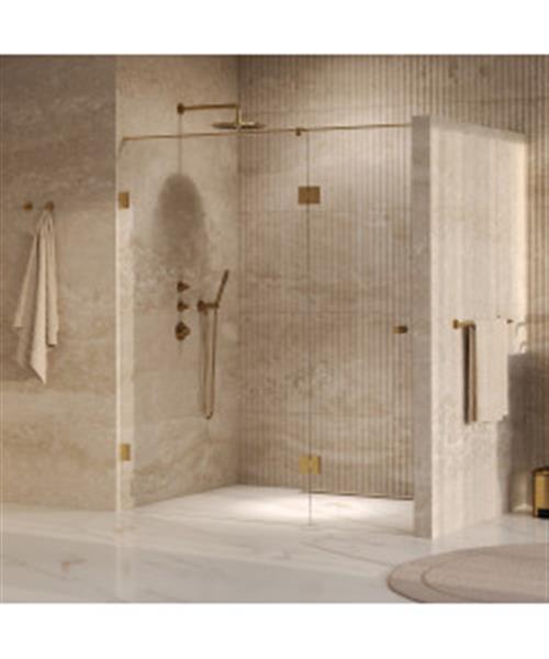 Ontdek de BRAUER Void Carving nisdeur 2-delig helder glas 180x200 omkeerbaar met draaideur 70 aan glas incl. glascoating PVD goud geborsteld, serie Carving, gemaakt van rvs,glas, in de kleur goud,helder en met geborsteld afwerking. Deze hoogwaardige uitvoering biedt perfecte kwaliteit en stijl voor uw badkamer.