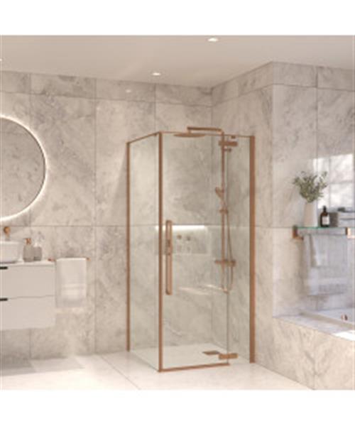 Douchecabine Sanivo Vigo Met Vast Paneel Helder Glas Met Montagesets Geborsteld Brons