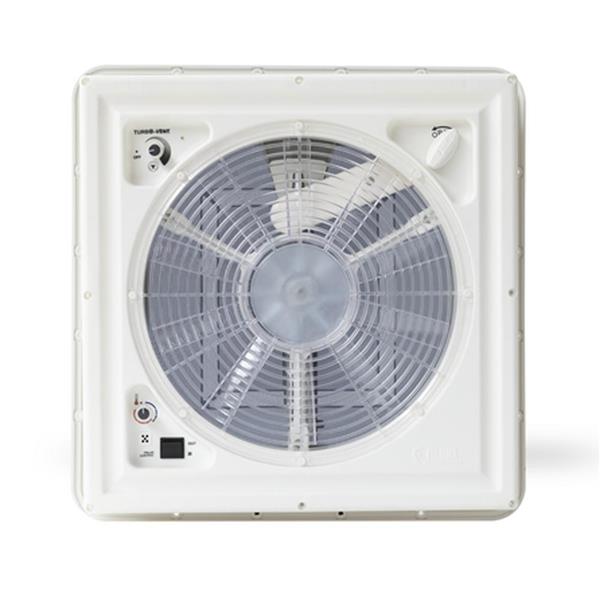 De Fiamma Turbo-Vent is een gemotoriseerd dakluik van 40x40cm en is voorzien van een grote ventilator met 10 bladen en een variabel in te stellen 12V motor.