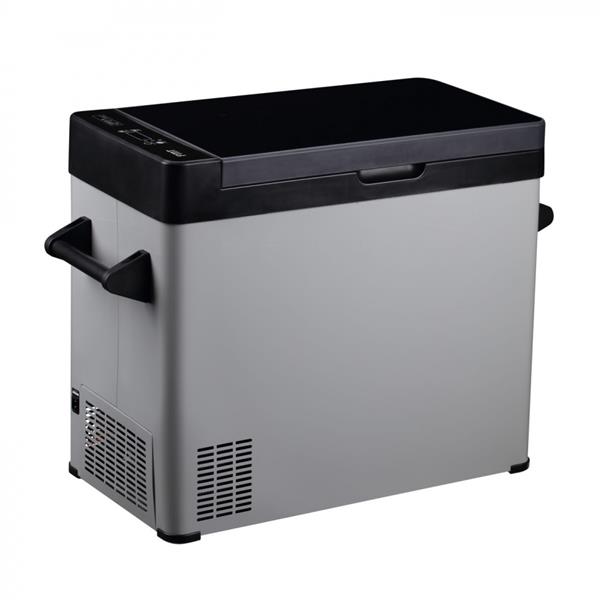 Praktische koelbox van grijs metaal. De Q-serie heeft een