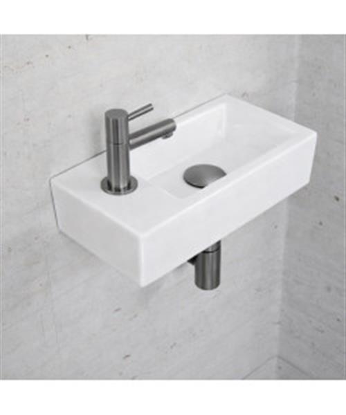 Let erop dat deze fontein het kraangat aan de linkerkant heeft, de set is ook verkrijgbaar met het kraangat rechts.