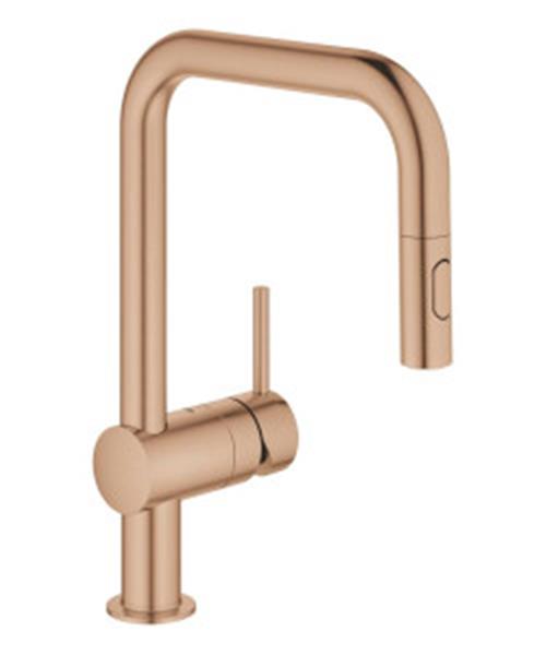 Intuïtief in gebruik, strak om te zien en ontworpen om geweldige prestaties te leveren; de GROHE Minta eengreeps keuken mengkraan in stijlvol Brushed Warm Sunset vormt een aanwinst voor iedere drukke moderne keuken. De hoge U-vormige uitloop is perfect voor het vullen van grote potten en pannen en de uitloop draait 360° rond, waardoor het de ideale keuze is voor dubbele spoelbakken. Voor totale flexibiliteit beschikt hij ook over een uittrekbare comfortabele mousseur - met een druk op de knop kan je schakelen tussen een fijne straal en een krachtige straal, ideaal voor het spoelen van potten en pannen of het reinigen van de bak. Het GROHE EasyDock-systeem betekent ook dat de mousseur gemakkelijk en netjes kan worden ingetrokken als je klaar bent en kalkaanslag verwijder je met een veeg van je vinger van de SpeedClean siliconen sproeigaatjes.