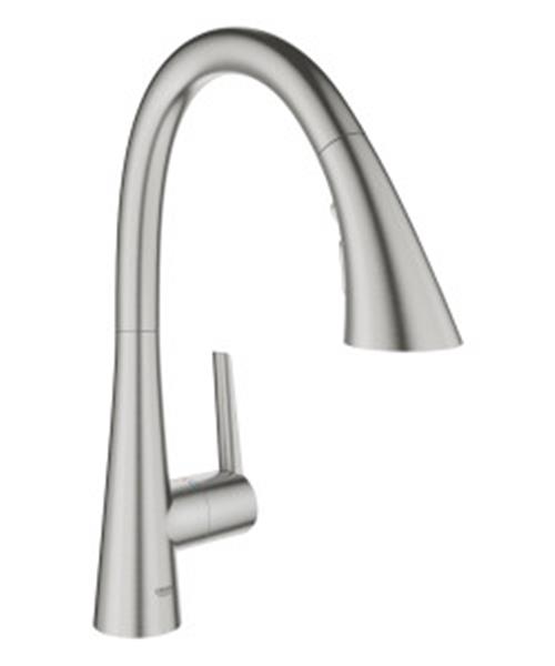 De GROHE Zedra keukenkraan wordt bepaald door een wijd uitlopende uitloop en elegante, vloeiende lijnen en is ontworpen met eenvoudige bediening als uitgangspunt, waardoor keukenklussen een fluitje van een cent worden. Ontworpen voor eengatsinstallatie laat de hoge C-vormige uitloop van de kraan veel ruimte over voor het vullen van grote potten of pannen, en de uitloop draait 360° voor extra flexibiliteit. De uittrekbare sproeikop is perfect voor het reinigen van de spoelbak of het klaarmaken van groenten en biedt 3 verschillende straalsoorten - een laminaire straal, een krachtige jet spray en de waterbesparende GROHE Blade Spray die het waterverbruik tot 70% vermindert. Er is ook een pauzeknop om de waterstroom stop te zetten - druk gewoon op de knop om de waterstroom te stoppen en het water begint opnieuw wanneer de knop wordt losgelaten. Wanneer je klaar bent, gaat de stroom automatisch terug naar de laminaire straal. GROHE Magnetic Docking zorgt ervoor dat de comfortabele sproeikop gemakkelijk op zijn plaats wordt getrokken. De GROHE SpeedClean zorgt ervoor dat je de sproeigaatjes kalkvrij houdt door er simpelweg je vinger overheen te vegen en binnenin zorgt een GROHE SilkMove cartouche voor een soepele, precieze bediening die de levensduur van de kraan meegaat. Installatie is snel en probleemloos dankzij het GROHE FastFixation Plus installatiesysteem. Deze monobloc keukenmengkraan ziet er nog jarenlang perfect uit omdat het een duurzame GROHE Long-Life afwerking heeft in combinatie met PVD-coating dat zorgt voor extra krasbestendigheid.