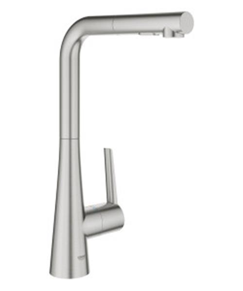 Schakel tussen straalsoorten en bereik elke hoek van de spoelbak dankzij de innovatieve functies en elegante design flair van de GROHE Zedra keukenkraan. Ontworpen voor eengatsinstallatie laat de hoge L-vormige uitloop van de kraan veel ruimte over voor het vullen van grote potten of pannen, en de uitloop draait 360° voor extra flexibiliteit. De uittrekbare sproeikop is perfect voor het reinigen van de spoelbak of het klaarmaken van groenten en biedt 2 verschillende straalsoorten - een laminaire straal en een krachtige jetstraal Het water keert automatisch terug naar de laminaire straal als je klaar bent. GROHE Magnetic Docking zorgt ervoor dat de comfortabele sproeikop gemakkelijk op zijn plaats wordt getrokken. De GROHE SpeedClean zorgt ervoor dat je de sproeigaatjes kalkvrij houdt door er simpelweg je vinger overheen te vegen en binnenin zorgt een GROHE SilkMove cartouche voor een soepele, precieze bediening die de levensduur van de kraan meegaat.En de installatie is een fluitje van een cent dankzij het GROHE FastFixation Plus installatiesysteem. Deze monobloc keukenmengkraan ziet er nog jarenlang perfect uit omdat het een duurzame GROHE Long-Life afwerking heeft in combinatie met PVD-coating dat zorgt voor extra krasbestendigheid.