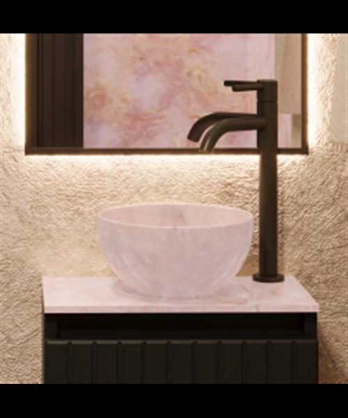 Geef uw badkamer een exclusieve uitstraling met deze compact ontworpen waskom van echt onyx marmer. De prachtige roze natuursteen maakt elk exemplaar uniek en bijzonder.