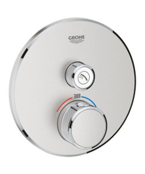 Verwezenlijk jouw droomdouche of -bad met deze Grohtherm SmartControl inbouwthermostaat in mat SuperSteel . Hij ziet er niet alleen prachtig en aantrekkelijk uit, maar levert ook ongeëvenaarde precieze prestaties. Door de innovatieve SmartControl technologie kun je het watervolume aanpassen met een druk en draai van de knop. De geïntegreerde GROHE TurboStat technologie voorkomt ongewenste temperatuurschommelingen. Door de GROHE EasyLogic signalering en knoppen met symbolen is de kraan eenvoudig en intuïtief in gebruik. Zeer geschikt voor gezinnen met kinderen. Met de GROHE SafeStop knop stel je de maximumtemperatuur in op 38° C om verbranding te voorkomen. Ook kun je kiezen voor de optionele GROHE SafeStop Plus temperatuurbegrenzer die ervoor zorgt dat de temperatuur niet boven 43° C komt. Met de waterbesparende GROHE WaterSaving technologie technologie kun je kiezen om minder water door te laten zonder aan comfort in te leveren. Dankzij het GROHE FastFixation systeem heb je de kraan binnen een handomdraai geïnstalleerd. Door het strakke design houd je de kraan eenvoudig schoon en de duurzame GROHE Long-Life afwerking ziet er na jarenlang gebruik nog schitterend uit. Door het slanke, ronde design dat perfect past bij een minimalistisch en gestroomlijnd interieur is deze kraan een prachtige toevoeging aan jouw badkamer.