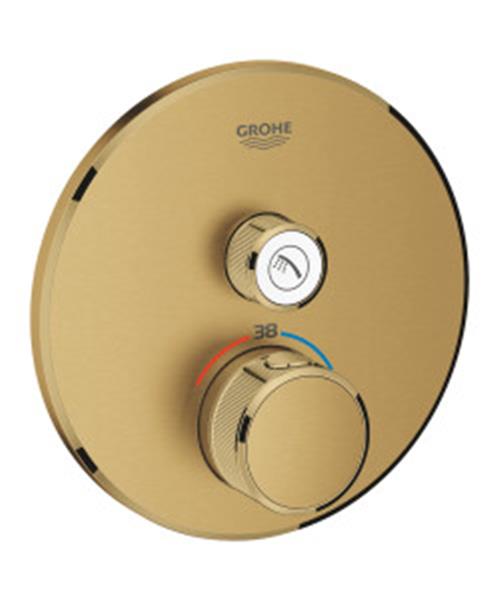 Creëer je droomdouche of bad met deze Grohtherm SmartControl inbouwthermostaat in chique Brushed Cool Sunrise, niet alleen ontworpen met het oog op aantrekkelijke kosmopolitische elegantie, maar ook voor het leveren van ongeëvenaarde en nauwkeurige prestaties. De innovatieve SmartControl technologie zorgt ervoor, dat je het watervolume kunt aanpassen met een druk of draai aan de knop. De geïntegreerde GROHE TurboStat technologie voorkomt vervelende schommelingen in de watertemperatuur. GROHE EasyLogic-markeringen en gestructureerde knoppen met verwisselbare symbolen maken het gemakkelijk en intuïtief in gebruik. Het is ook de familievriendelijke keuze, omdat de GROHE SafeStop temperatuurbegrenzer op 38°C is ingesteld. Hierdoor hoef je nooit bang te zijn dat je je aan het water zal verbranden. En met de GROHE SafeStop Plus temperatuurbegrenzer kan je er een limiet van 43°C aan toevoegen voor nog meer veiligheid. De waterbesparende GROHE WaterSaving technologie technologie biedt je de mogelijkheid van een verlaagd debiet zonder dat je op het gebied van gebruiksgenot iets in hoeft te leveren. Dankzij het GROHE FastFixation System is het snel en gemakkelijk te installeren. Het smalle profiel zorgt ervoor dat het gemakkelijk is om te reinigen en de slijtvaste GROHE Long-Life- afwerking zal er jarenlang prachtig uit blijven zien. Het slanke, ronde ontwerp is perfect om een strakke, moderne look te creëren en zal elke badkamer mooier maken.