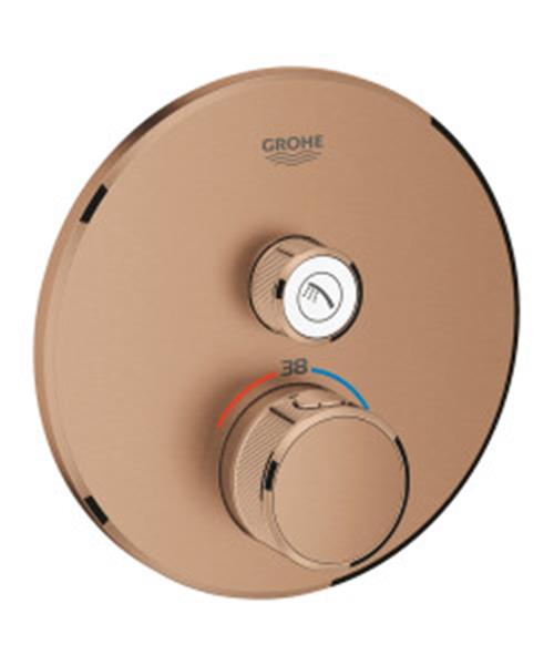Creëer je droomdouche of bad met deze Grohtherm SmartControl inbouwthermostaat in chique Brushed Warm Sunset, niet alleen ontworpen met het oog op aantrekkelijke kosmopolitische elegantie, maar ook voor het leveren van ongeëvenaarde en nauwkeurige prestaties. De innovatieve SmartControl technologie zorgt ervoor, dat je het watervolume kunt aanpassen met een druk of draai aan de knop. De geïntegreerde GROHE TurboStat technologie voorkomt vervelende schommelingen in de watertemperatuur. GROHE EasyLogic-markeringen en gestructureerde knoppen met verwisselbare symbolen maken het gemakkelijk en intuïtief in gebruik. Het is ook de familievriendelijke keuze, omdat de GROHE SafeStop temperatuurbegrenzer op 38°C is ingesteld. Hierdoor hoef je nooit bang te zijn dat je je aan het water zal verbranden. En met de GROHE SafeStop Plus temperatuurbegrenzer kan je er een limiet van 43°C aan toevoegen voor nog meer veiligheid. De waterbesparende GROHE WaterSaving technologie technologie biedt je de mogelijkheid van een verlaagd debiet zonder dat je op het gebied van gebruiksgenot iets in hoeft te leveren. Dankzij het GROHE FastFixation System is het snel en gemakkelijk te installeren. Het smalle profiel zorgt ervoor dat het gemakkelijk is om te reinigen en de slijtvaste GROHE Long-Life- afwerking zal er jarenlang prachtig uit blijven zien. Het slanke, ronde ontwerp is perfect om een strakke, moderne look te creëren en zal elke badkamer mooier maken.