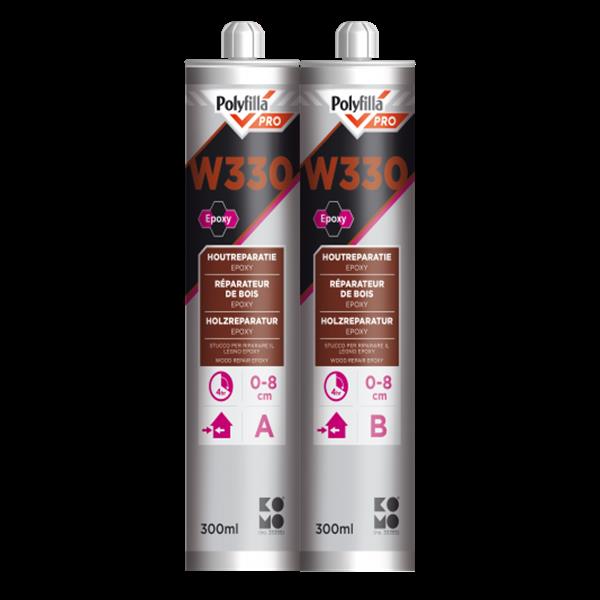 Polyfilla PRO W330 2K epoxy 240 minuten 0-8cm Grote Houtreparatiepasta 2-30 graden per set van 600ml