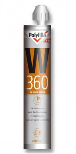 Polyfilla PRO W360 2K epoxy-vrije 120 minuten 5mm-2cm Houtreparatiepasta 2-in-1-koker van 250ml (opvolger van Sikkens WR-T) NONPAINTSTORE, compleet vernieuwd 1.000.000+ producten verkocht