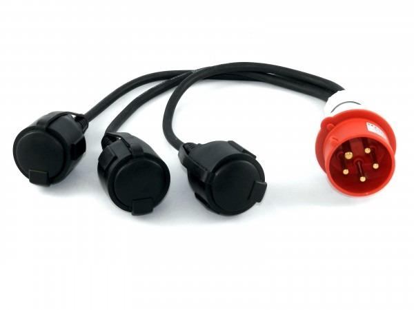 Stekker 400V, 5-polig -> 3x230V, 3-polig koppeling
