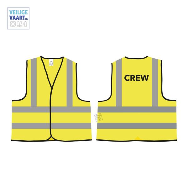 De Hesjes zijn uiteraard om extra zichtbaar te zijn en zorgen voor veiligheid. De veiligheidshesjes van veilige vaart zijn bedrukt met "crew".