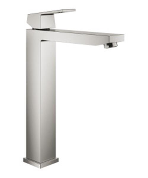 Met de strakke en hoekige vormgeving past de GROHE Eurocube eengreeps wastafelmengkraan perfect bij een vrijstaande wastafel met een moderne look. De chique wastafelkraan in SuperSteel (RVS kleur) met extra hoge uitloop is waterbesparend en zit boordevol GROHE-technologie. Het watervolume en de temperatuur regel je nauwgezet met de metalen hendel dankzij de GROHE SilkMove keramische cartouche. De GROHE WaterSaving technologie-functie zorgt ervoor dat waterverspilling wordt voorkomen en beperkt de waterstroom tot wel 5,7 liter per minuut. Zo profiteer je van een kwalitatieve waterstroom op een milieuvriendelijke manier. De GROHE Eurocube eengreeps wastafelkraan is naast gebruiksvriendelijk ook eenvoudig in onderhoud. Zo wrijf je vuil en kalk met een handbeweging van de SpeedClean mousseur zodat kalkaanslag wordt voorkomen. De duurzame GROHE Long-Life afwerking heeft een zeer hoge krasbestendigheid waardoor je wastafelmengkraan er altijd als nieuw uitziet. De eengatsmontage gaat snel en vakkundig met het GROHE FastFixation Plus-systeem met een tijdwinst van ruim 50%. Met de waterbesparende GROHE Eurocube eengreeps wastafelmengkraan voeg je gebruikscomfort toe aan je badkamer voor een betaalbare prijs.